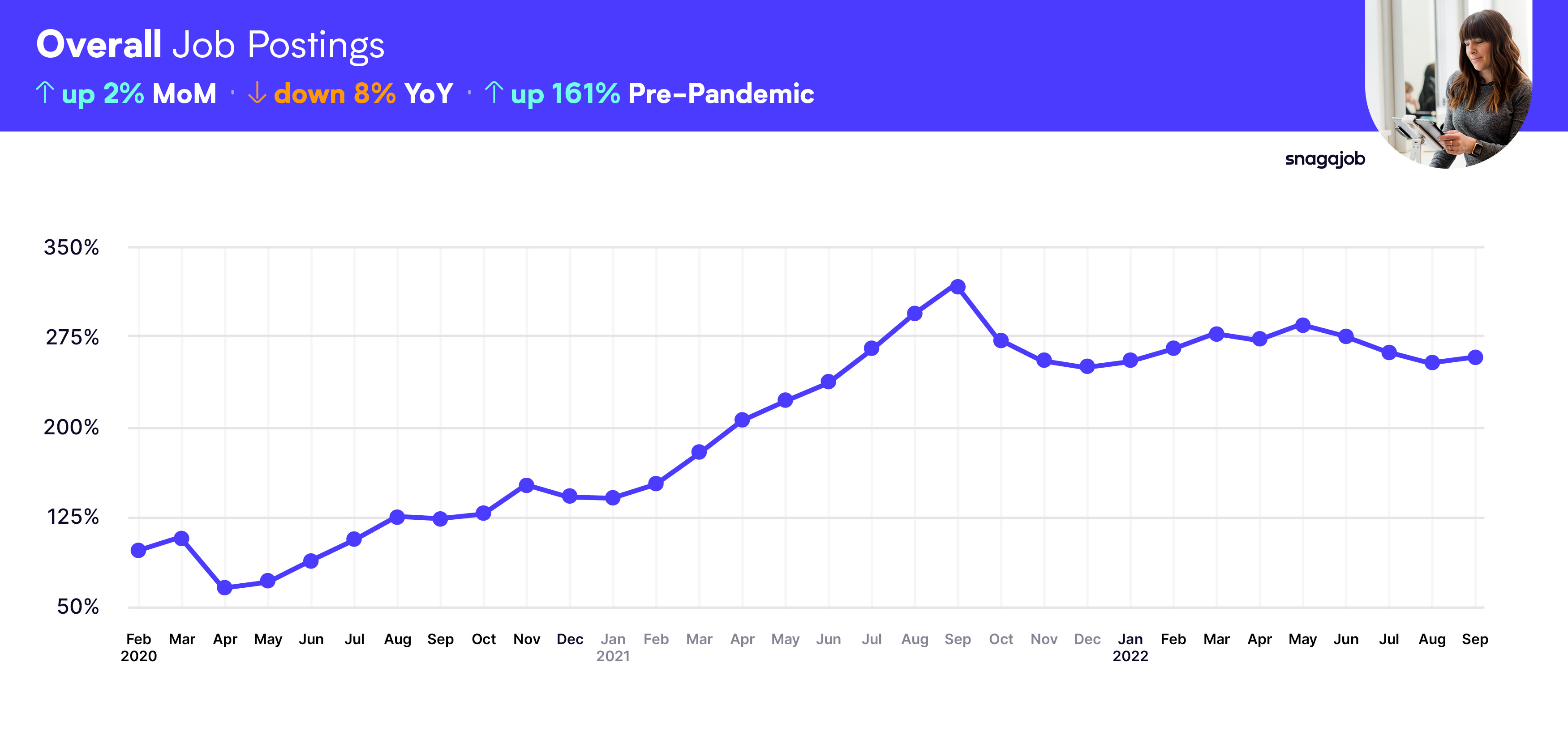 Overall, while hourly jobs are up 161% from February 2020's pre-pandemic numbers, we are seeing an 8% month-over-month drop and a 2% year-over-year decline.