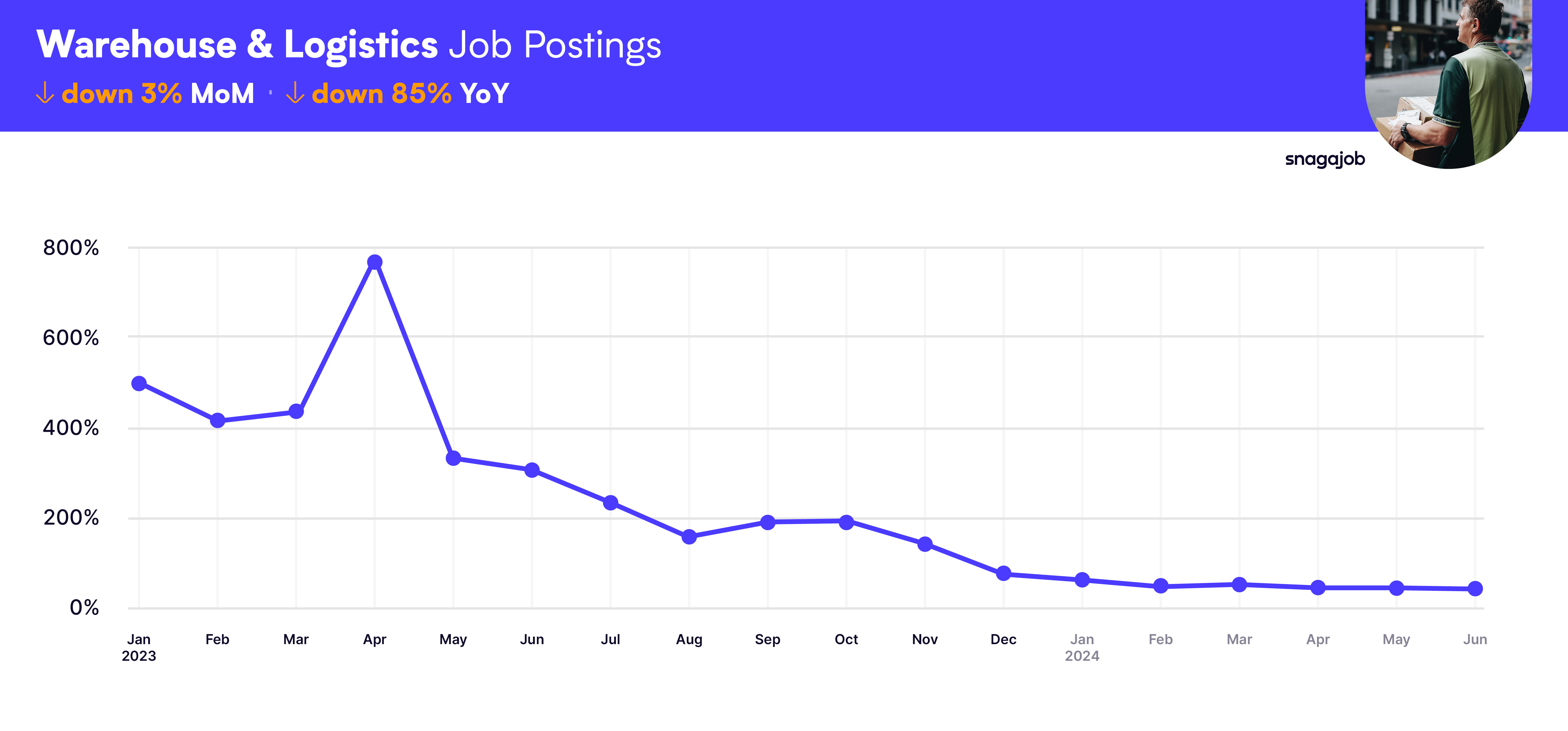 Warehouse & Logistics jobs are down 3% month-over-month.