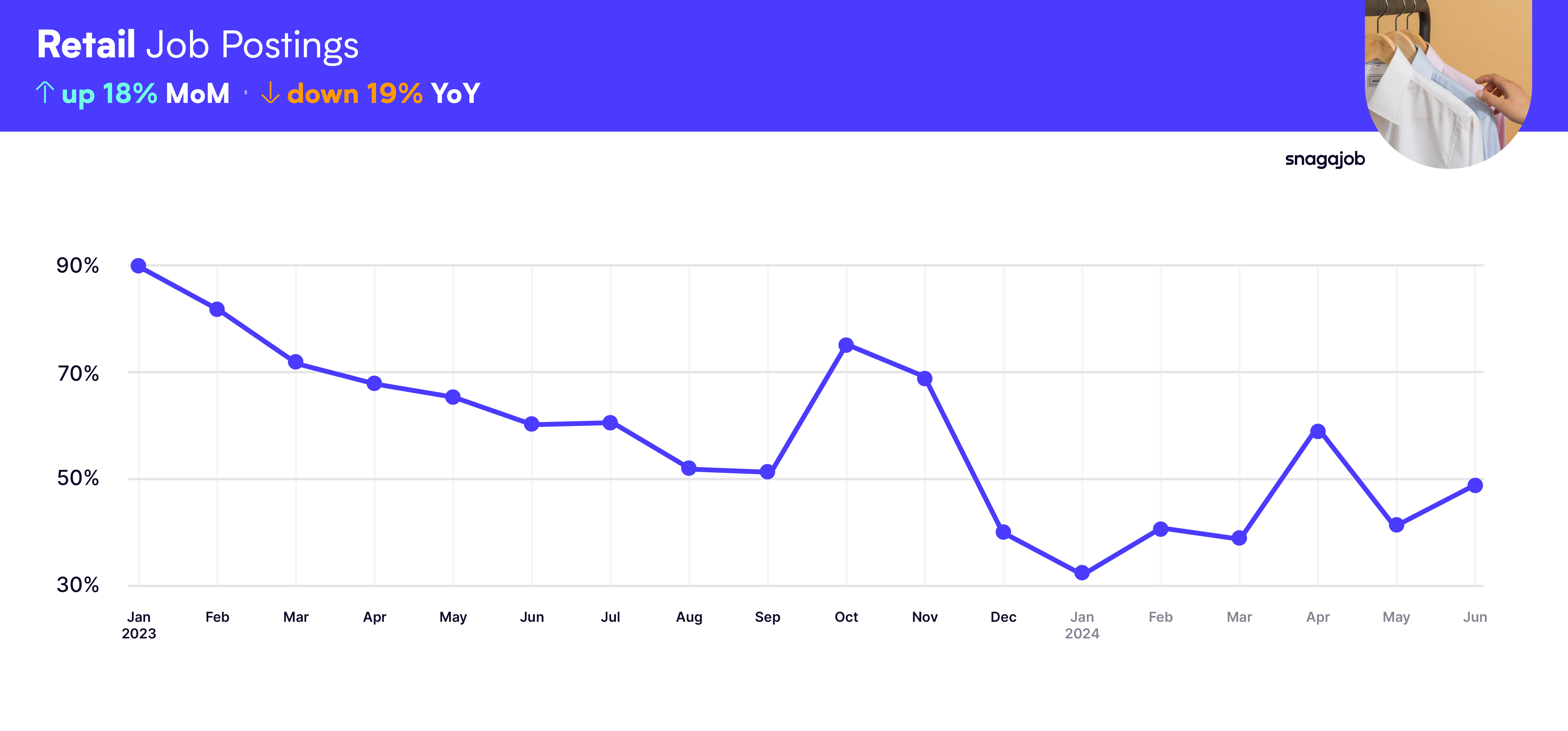 Retail jobs are up 18% month-over-month.