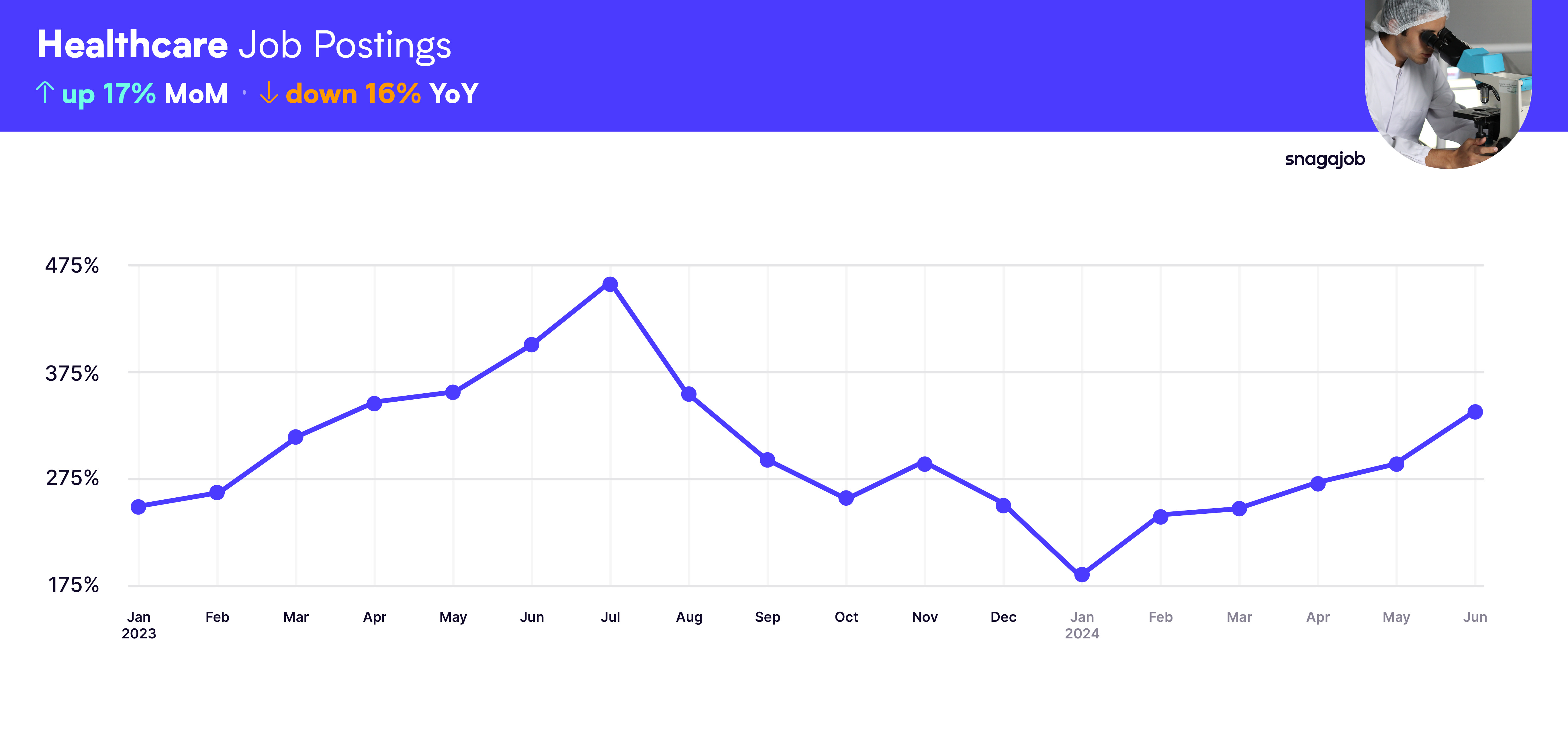 Healthcare jobs are up 17% month-over-month.