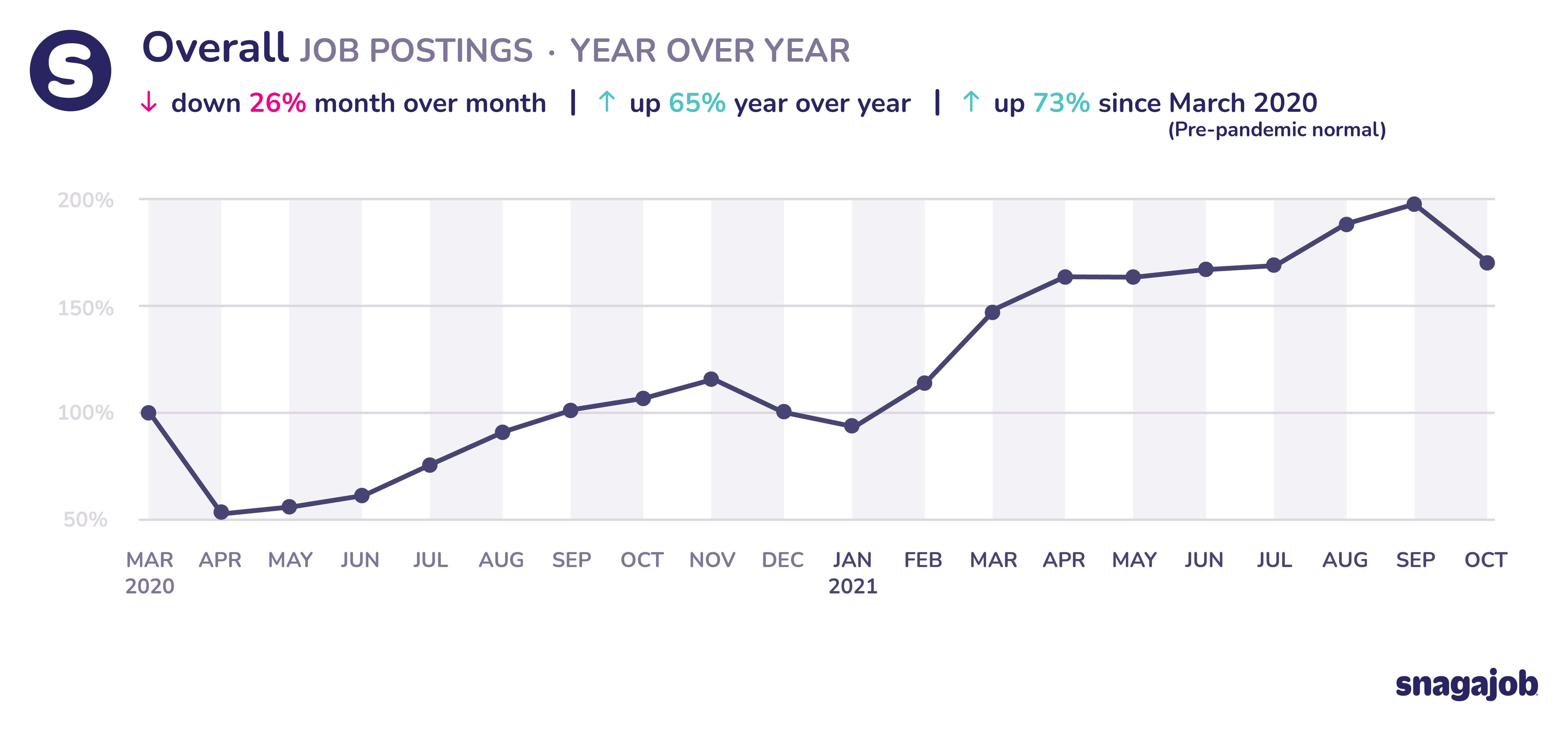 On demand jobs are up 154% compared to pre-pandemic norms, seeing a 68% month over month decline and 107% year over year growth.