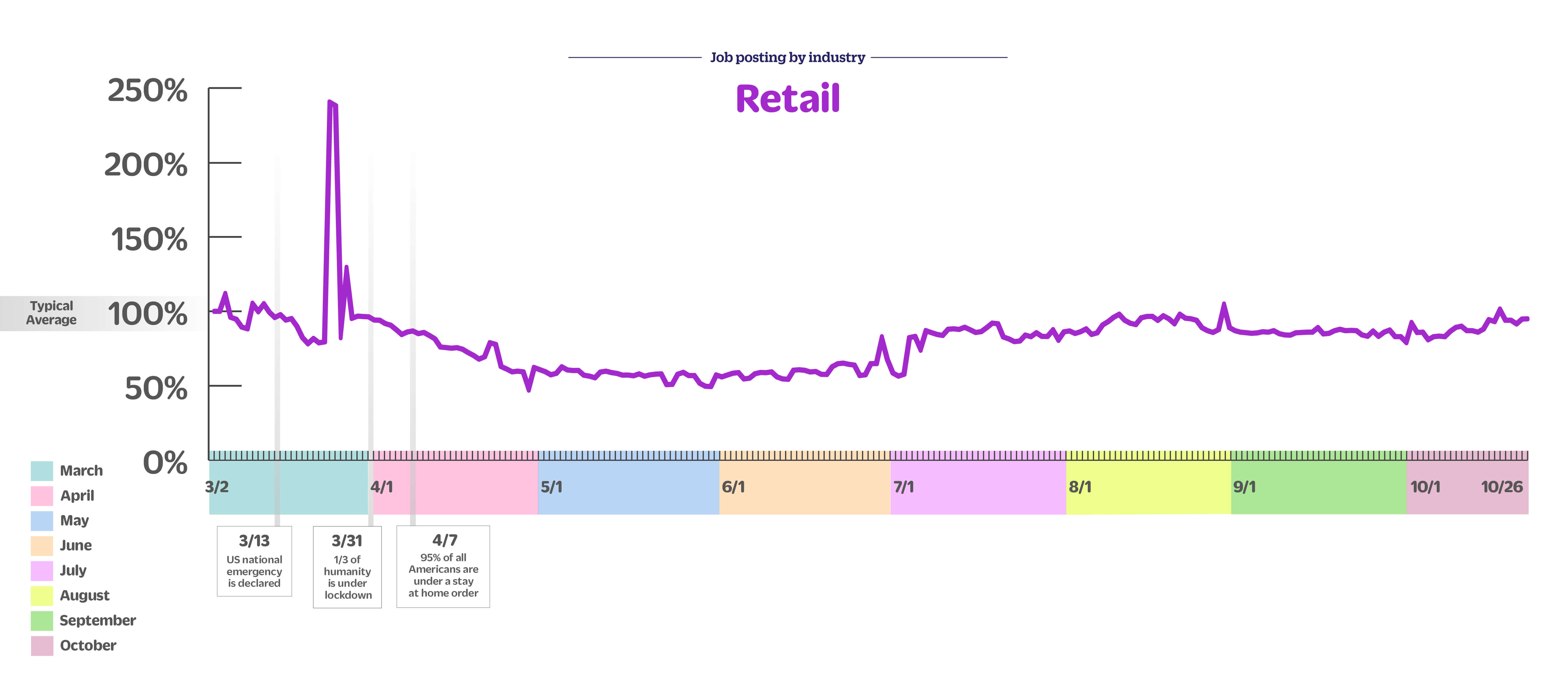 On demand jobs are up 17% week over week, down 13% month over month and up 82% since early March.