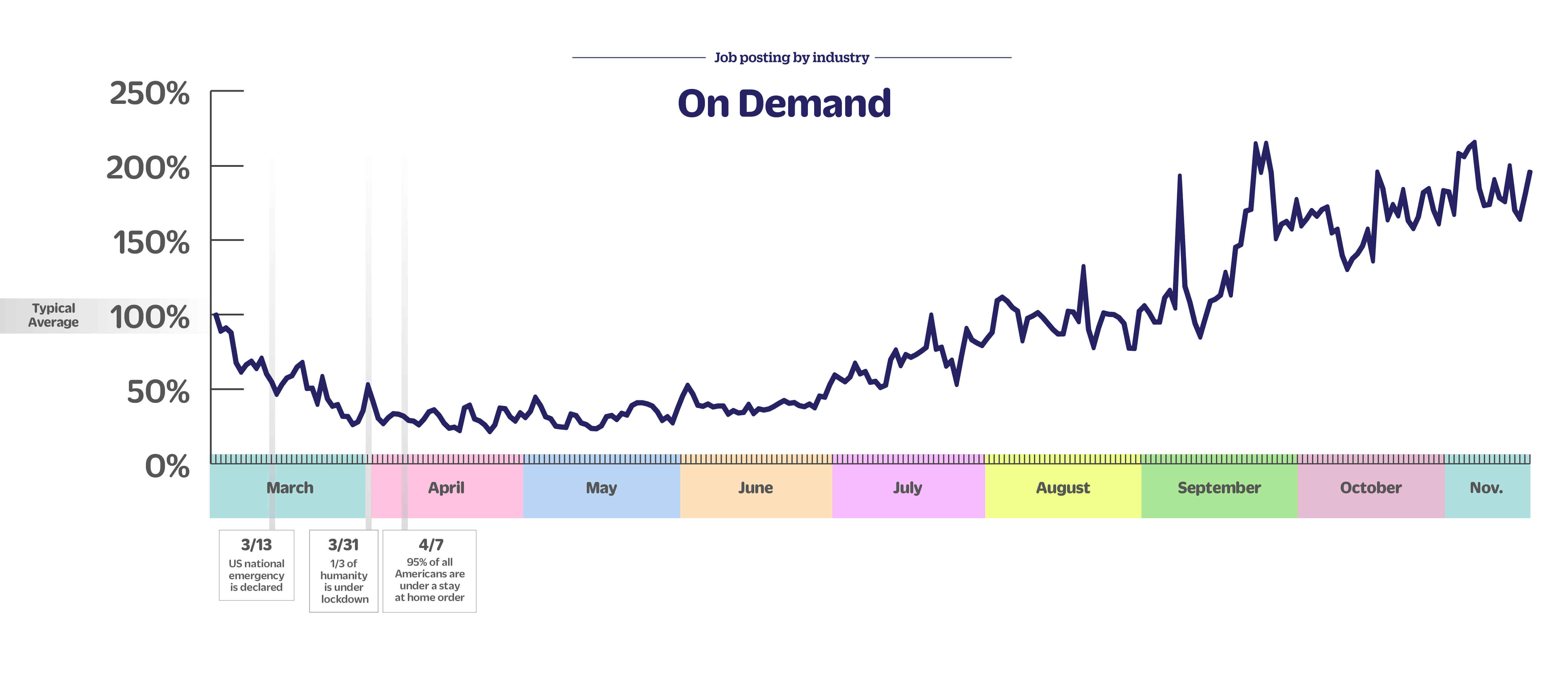 On demand jobs are up 7% week over week, up 59% month over month and up 96% since early March.