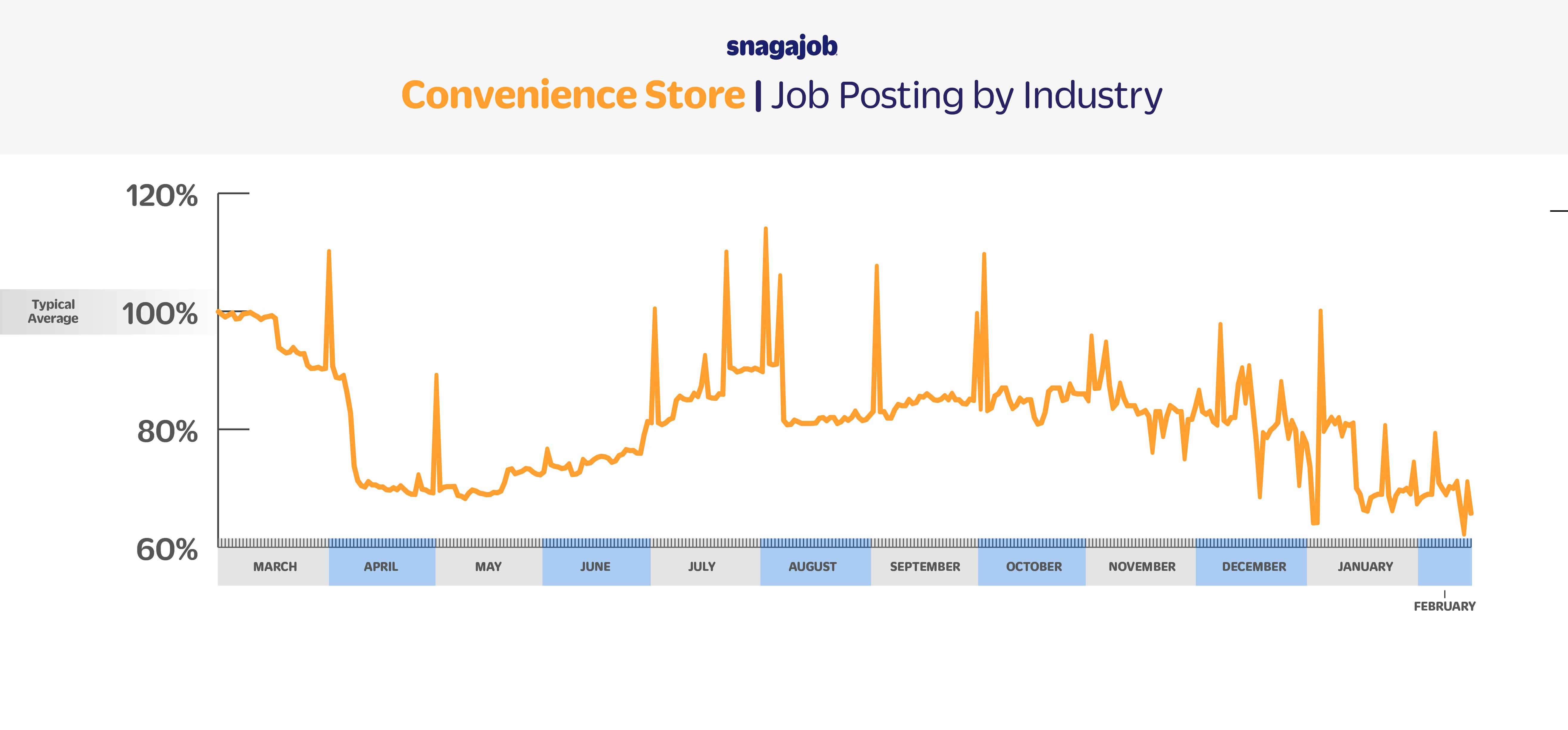 Convenience store jobs are down 3% week over week, down 3% month over month and down 34% since early March.