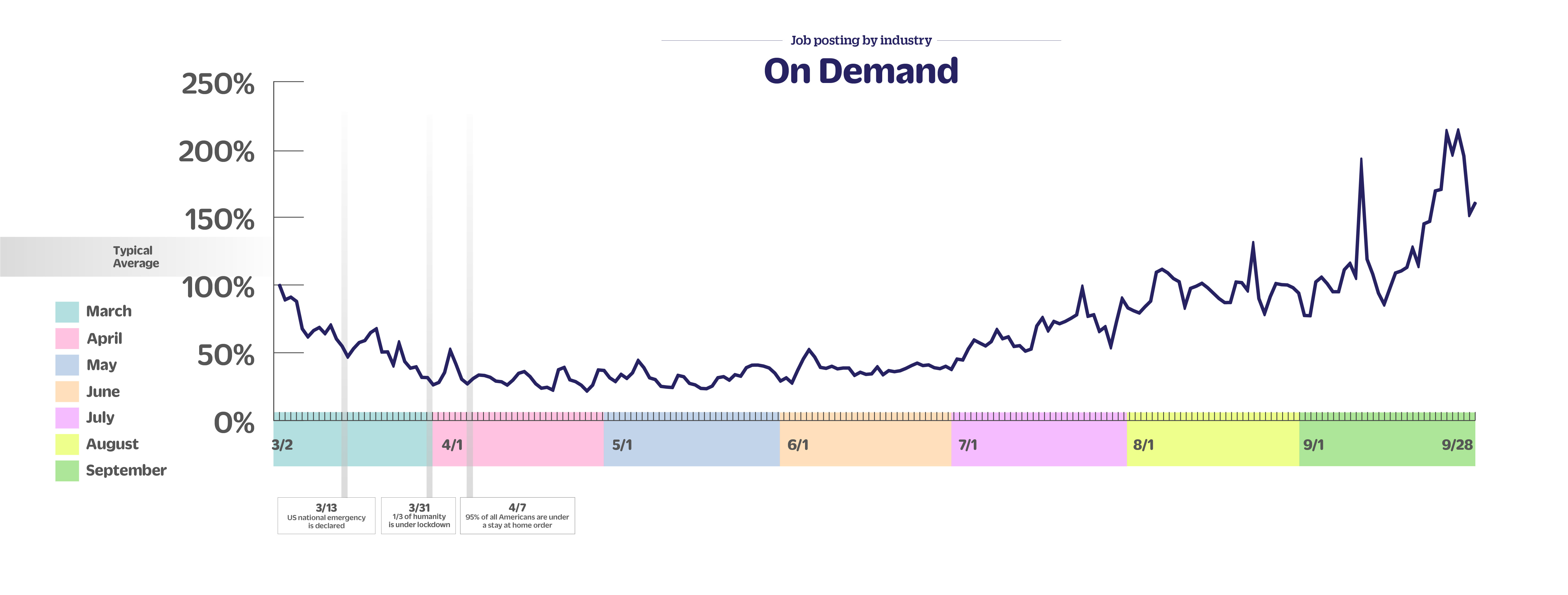 On demand jobs are down 9% week over week, up 66% month over month and up 61% since early March.
